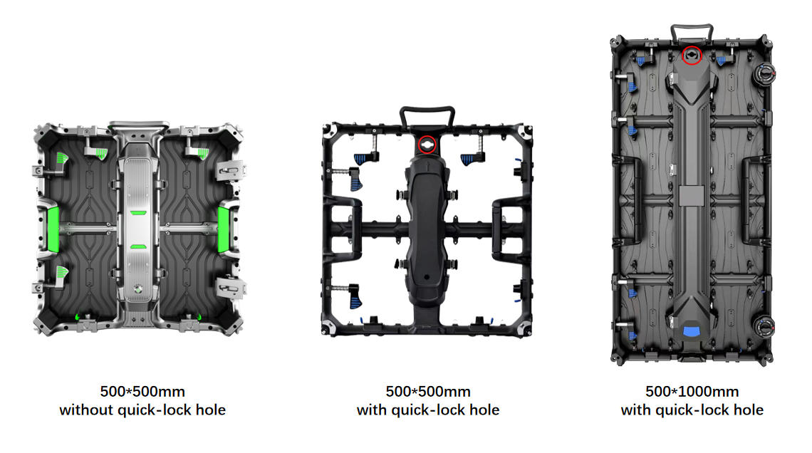 Check with your screen panel suppliers to confirm whether the panels you purchased are equipped with quick lock holes. If they do have quick lock holes, you can provide us with the panel drawing. GF-Truss can customize the quick lock for your panel. If there is no quick lock hole, you can also use screw locks.