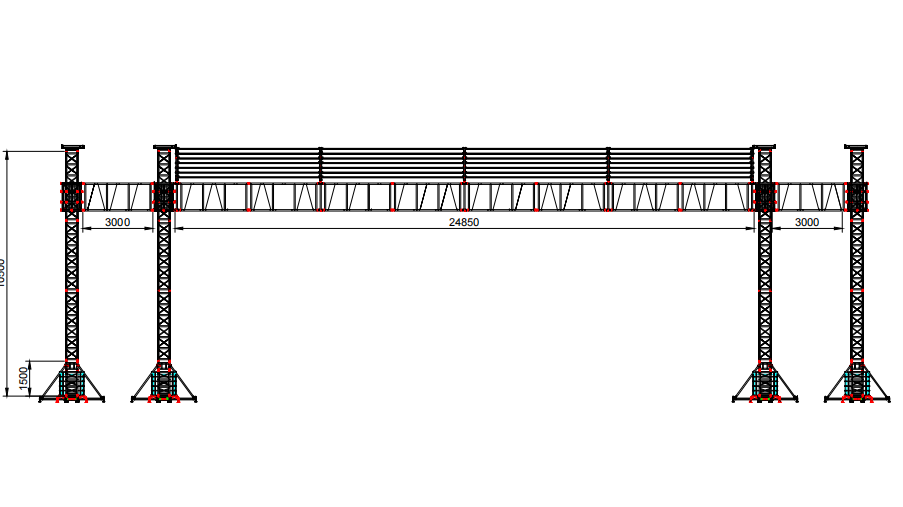 هذا السقف المسطح هويتكون الهيكل من هيكل جملوني بأبعاد 24*12*12.5 مترًا، مُدمج مع هيكل مظلة، ويُستخدم للعروض التجارية الداخلية والخارجية. بعد اكتمال الإنتاج، أجرينا اختبار حمل TUV لعارضة بطول 24 مترًا، وتجربة تجميع للهيكل لمدة يومين.